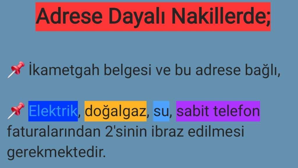 Adrese Dayalı Nakil İçin Gerekli Belgeler
